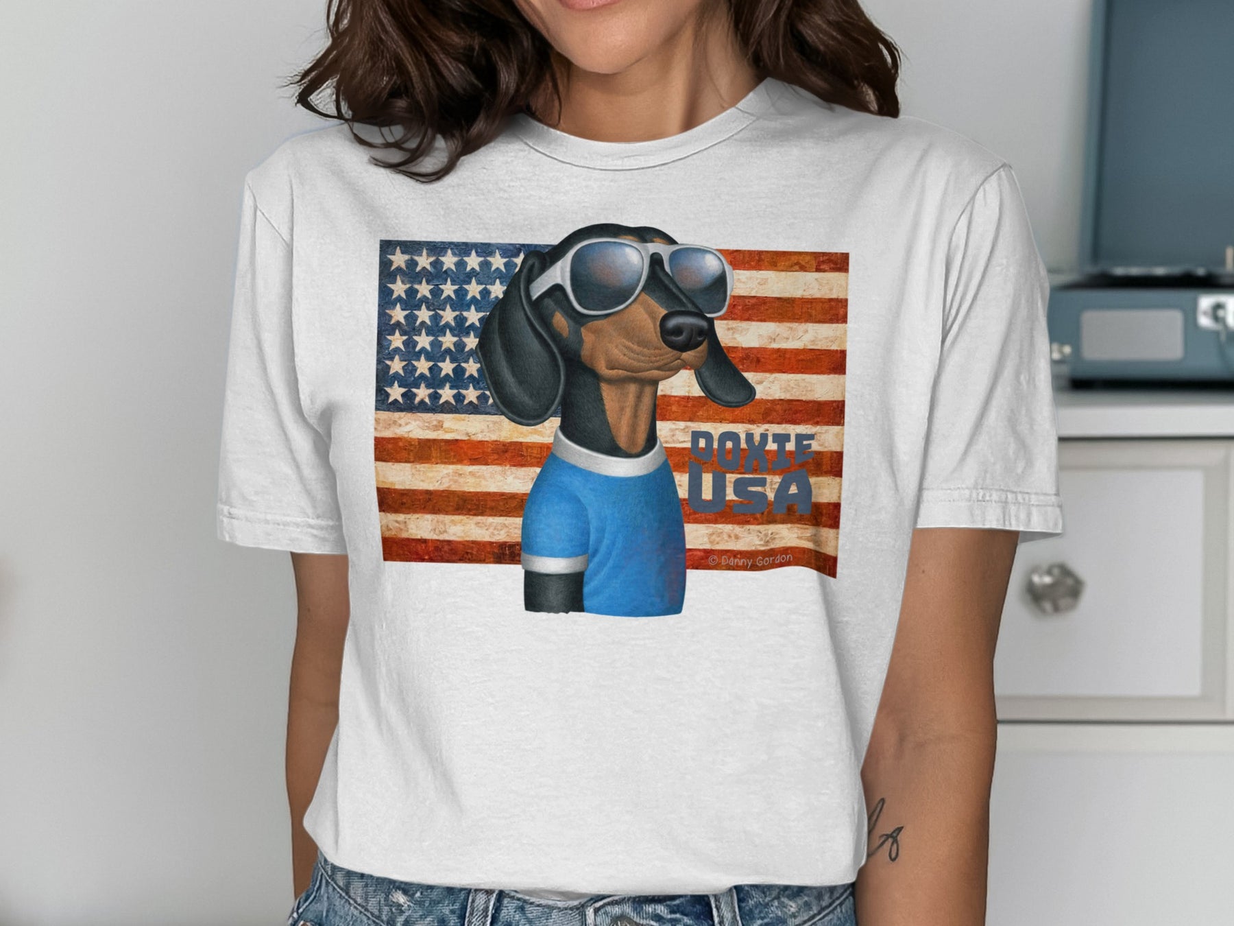 Doxie USA T Shirt, Patriotic Dachshund Tee, Weiner Dog Shirt, American Flag Dog Shirt, Dog Lover TShirt, 4th of July Dachshund Outfit