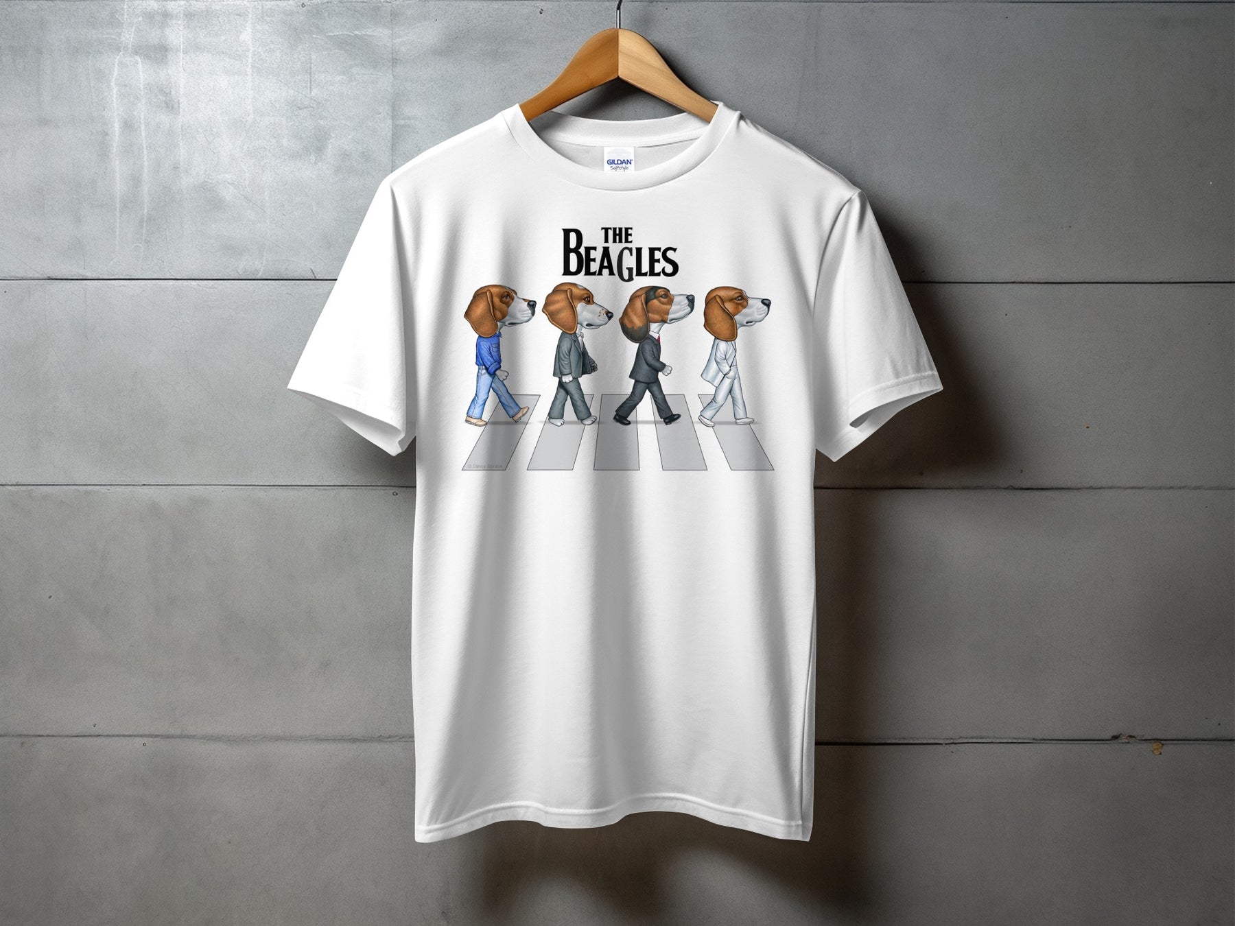 Introducing "The Beagles" T-Shirt, a must-have for beagle lovers and music enthusiasts. This unique T-Shirt features four adorable beagles crossing Abbey Road, paying homage to a legendary album cover.